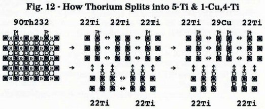 ഀ ഀIf we imagine that the above two modes of splitting of 90Th232 have nearly equal probability of occurring, we would expect 9 titanium nuclides for each copper nuclide, which is close to the 10/1 ratio that has been reported in the Cincinnati Disclosure.